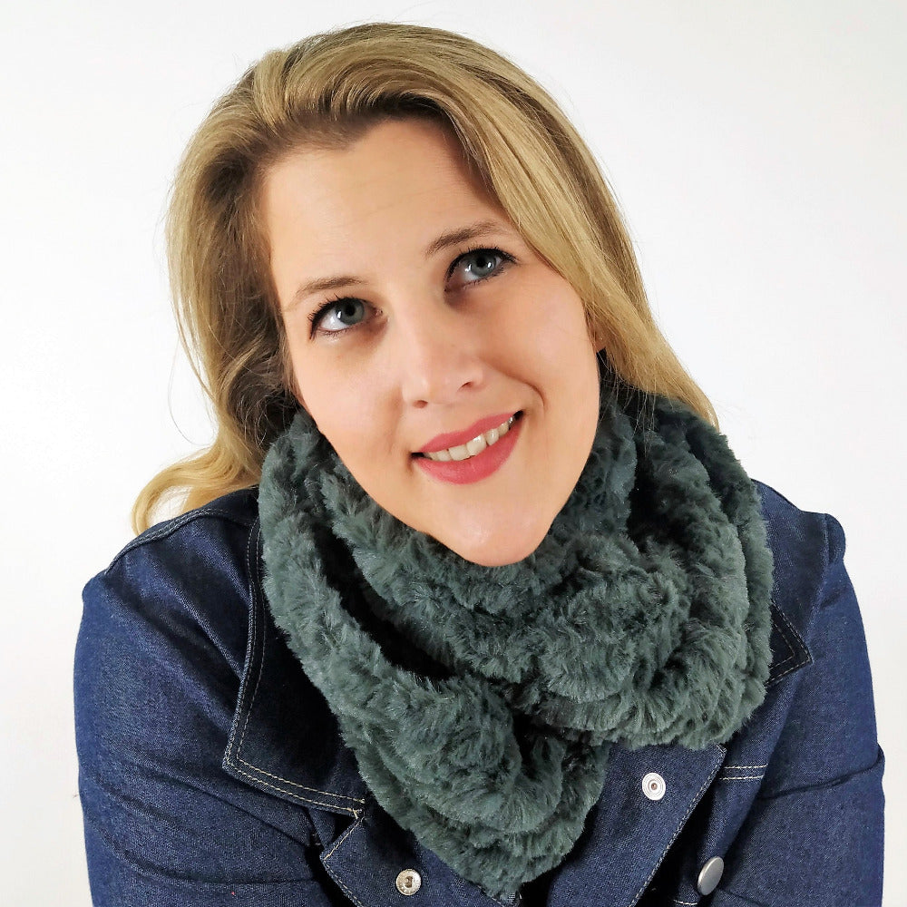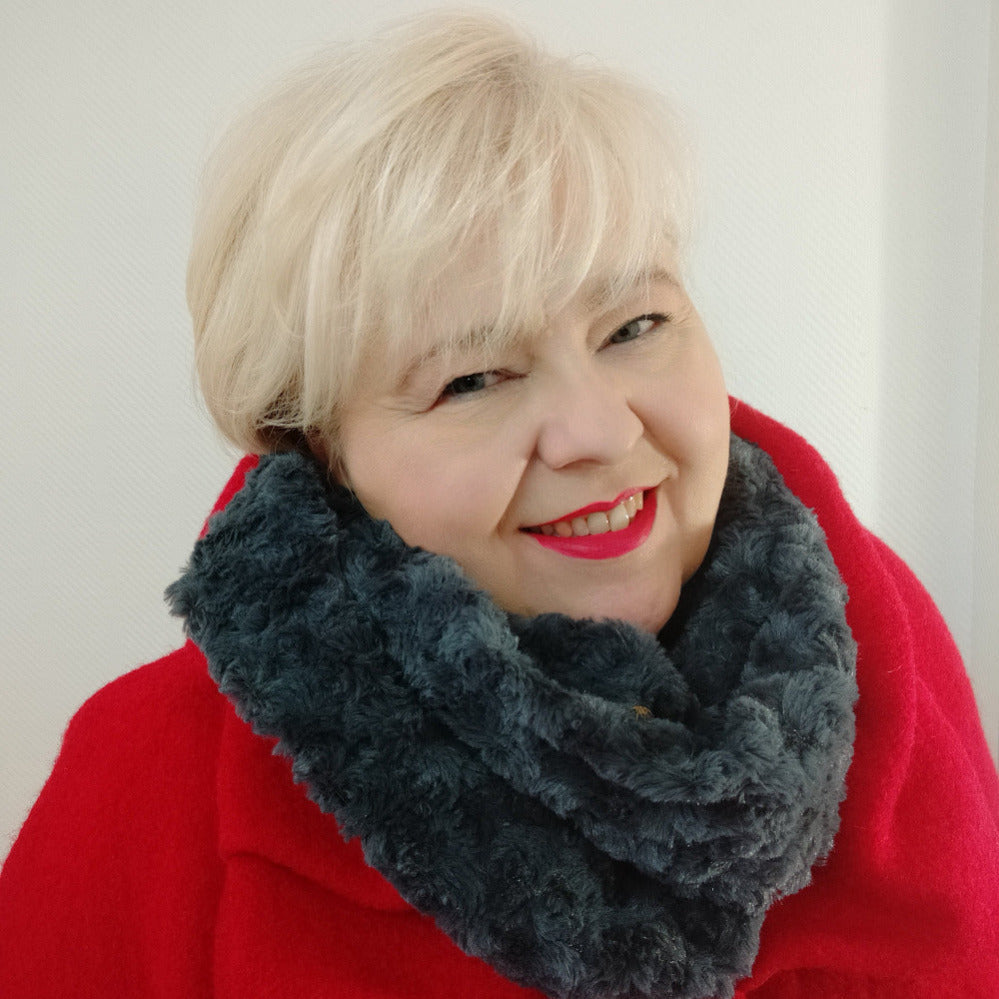 Dieser Kuschelloop verzichtet bewusst auf das gezeigte feminine „Röschen“-Muster und besticht stattdessen durch ein stilvolles Grau mit einem subtilen Petrolschimmer, das nahezu jeder Frau steht. Egal ob jung oder jung geblieben – dieser Farbton harmoniert perfekt mit vielen Jacken und Mänteln.