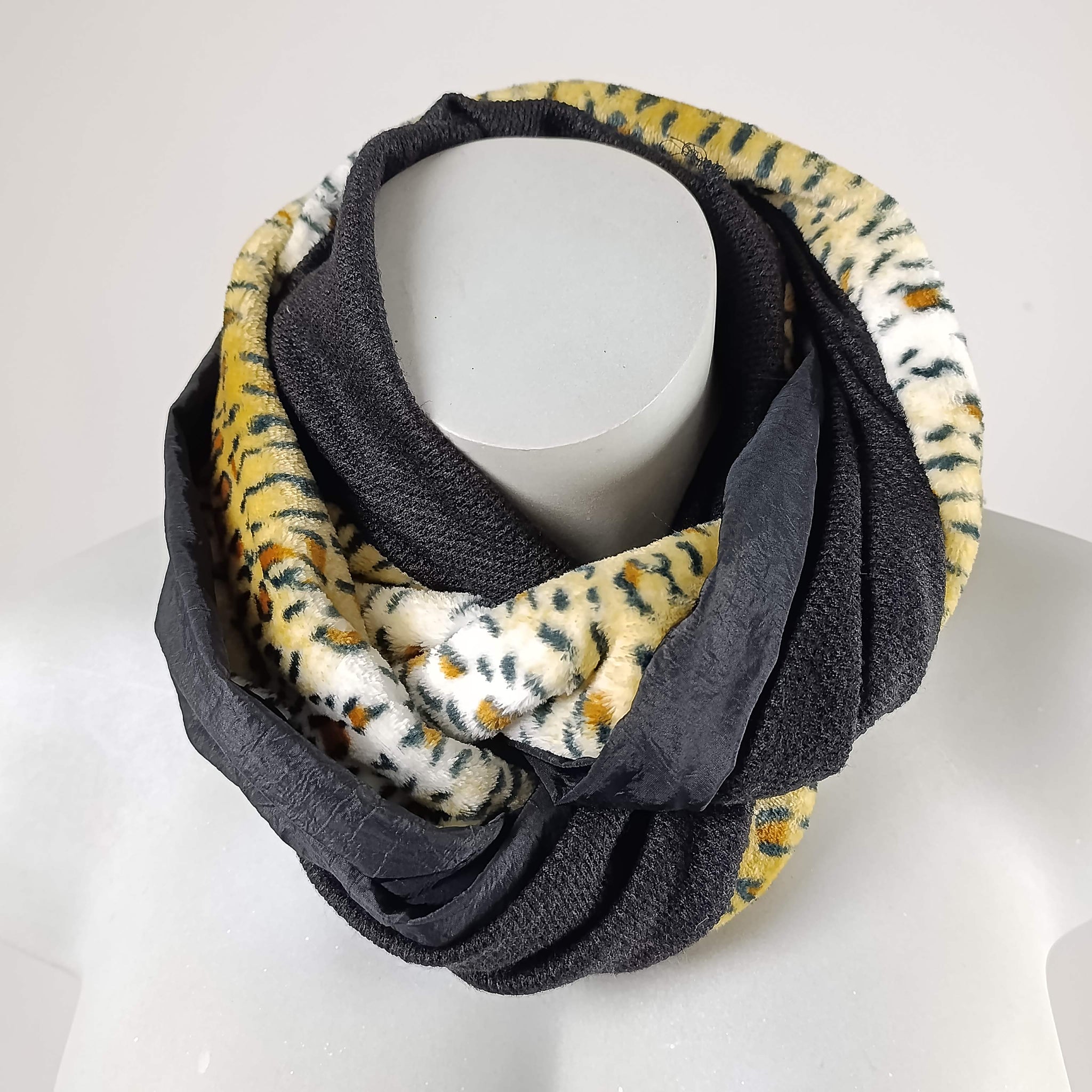 Da ist er wieder der Trend: LEO! Ich weiß: LEO polarisiert - frau mag Leo oder eben nicht! In kleinen, homöopathischen Dosen wie hier mag ich Leo sehr. Sehen Sie selbst: Der Loop Leo kombiniert drei verschiedene Stoffe zu einem einzigartigen, gemütlichen Loo und ist nur in ganz kleiner Auflage erhältlich!