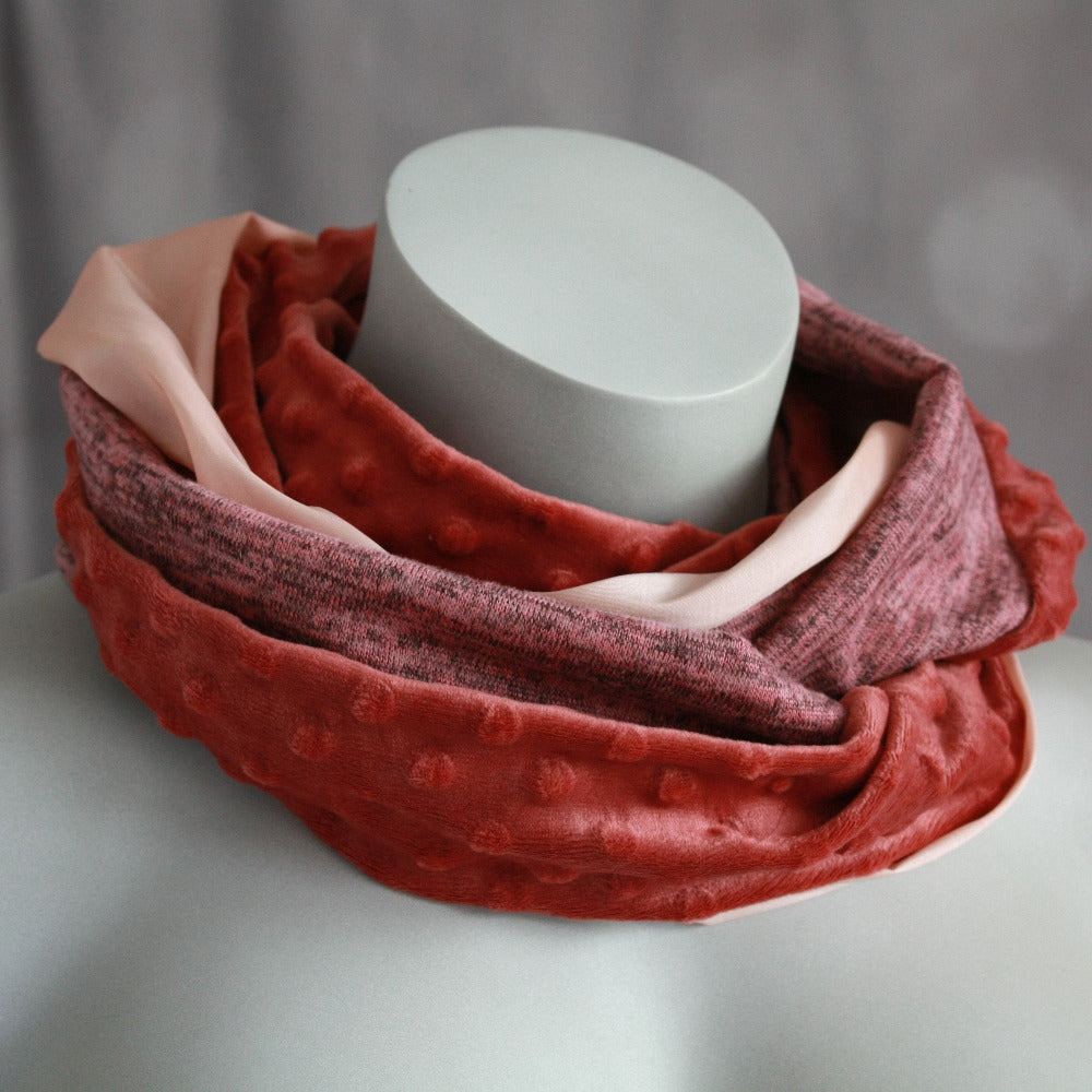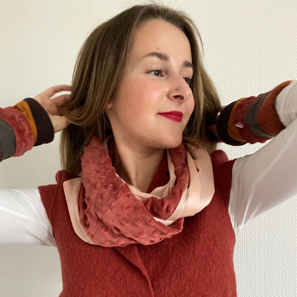 Eine warme, gedeckte Komposition und der ideale Loop für den Herbst- und Frühlingstyp unter Ihnen! Auch dies für die Frauen, die gerne kräftige Farben tragen.