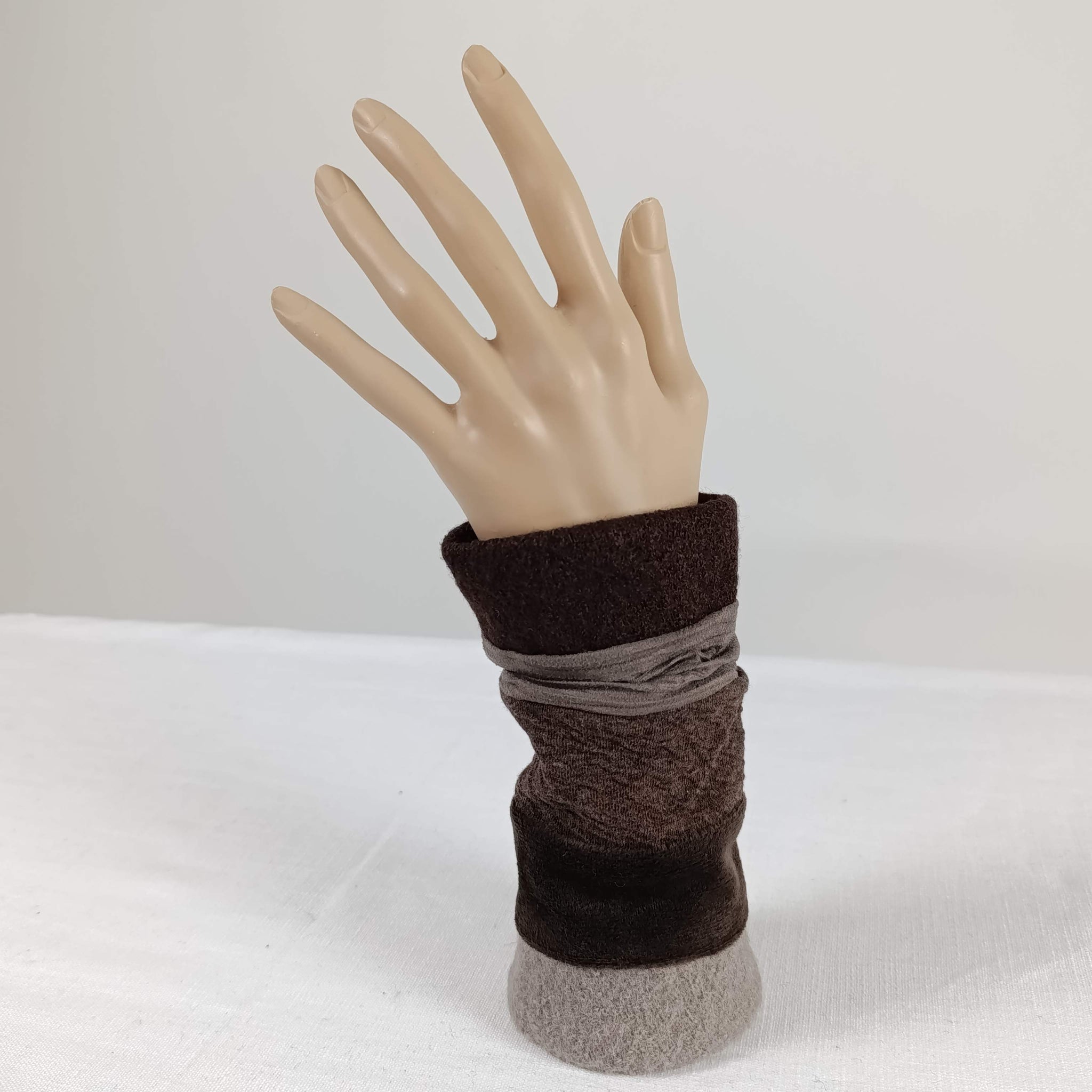 Hier Schokoladenbraun trifft auf Milchkaffee-Nuancen – dieser Pulswärmer ist die perfekte Antwort auf jeden grauen Wintertag.