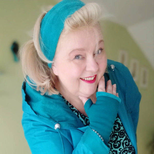 Mit zwei, drei kleinen Handgriffen falten Sie den Rolli am Hals und ziehen ihn gefaltet zurück über den Kopf und schon haben Sie ein Stirnband.