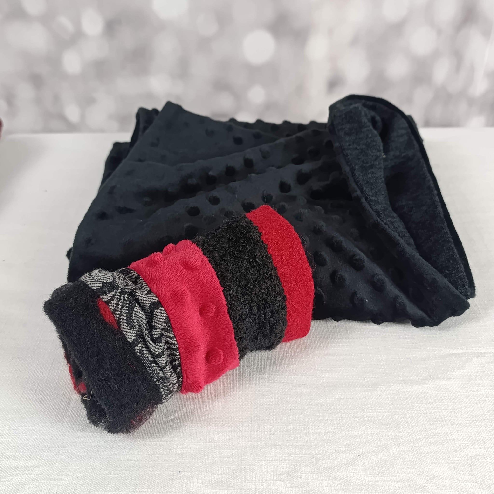 Passend dazu sind Pulswärmer in Schwarz-Rot, nur Schwarz oder Schwarz-Grau erhältlich, die das Set harmonisch ergänzen. Wählen Sie aus!